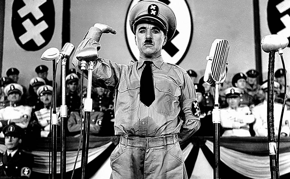 Adere ao cinema falado em 1940, com O Grande Ditador, em que realiza um belo discurso final. Lançado em meio a Segunda Guerra Mundial, o longa fez muito sucesso. Boatos davam conta, inclusive, de que o próprio Adolf Hitler assistia secretamente a obra na Alemanha.