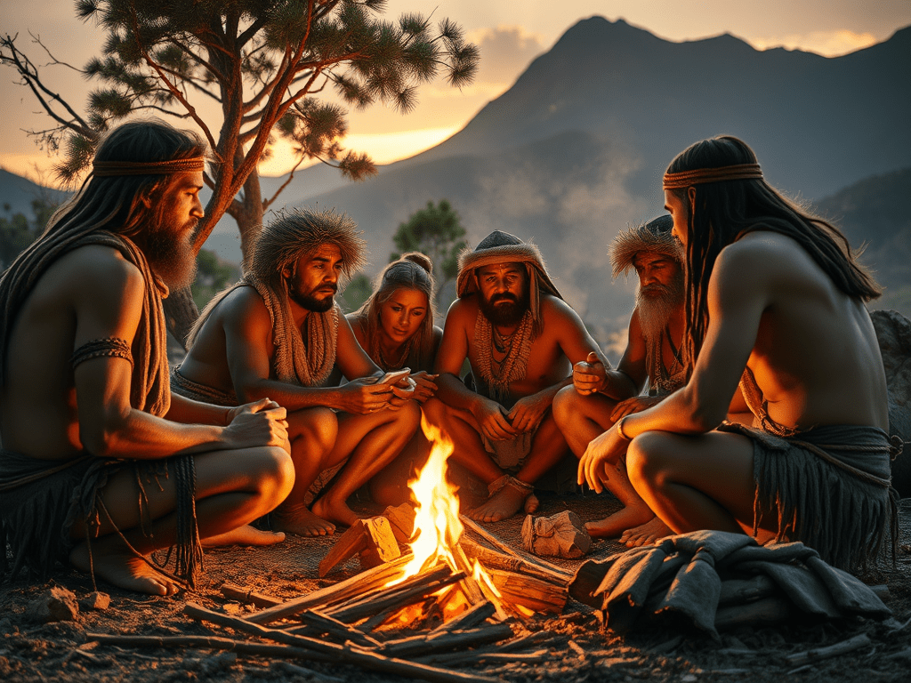 Ao redor do fogo, os grupos passaram a se reunir. O fogo criou um centro simbólico: um lugar de encontro, narrativa e transmissão de experiências. Muitos antropólogos consideram que ali começou a vida social estruturada, com histórias, gestos e rituais compartilhados.